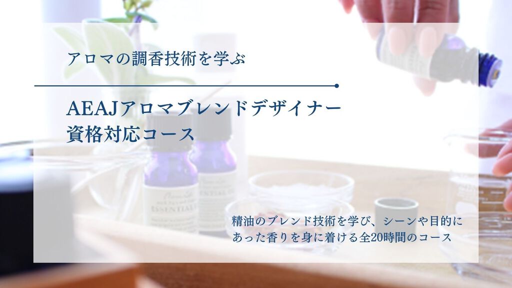 AEAJアロマテラピー検定対応コース AEAJアロマテラピーアドバイザー認定講習会 AEAJアロマテラピーインストラクター資格対応コース AEAJアロマセラピスト資格対応コース AEAJアロマブレンドデザイナー資格対応コース AEAJアロマハンドセラピスト資格対応コース